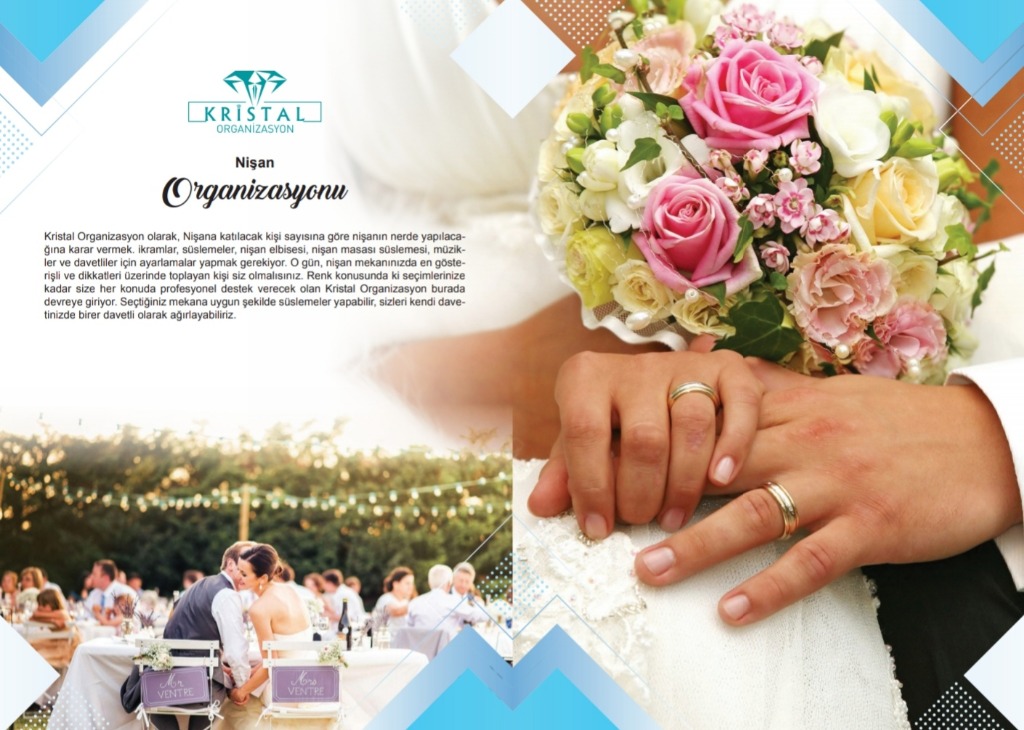 Kristal organizasyon olarak, Nişana katılacak kişi sayısına göre nişanın nerede yapılacağına karar vermek, İkramlar, Süslemeler, nişan elbisesi, nişan masası, müzik ve davetliler için ayarlamalar yapamak gerekiyor. Nişan mekanınızda en gösterişli ve dikkatleri üzerine toplayan kişi siz olmalısınız. Renk konusundaki seçimlerinize kadar size her konuda profesyonel destek verecek olan kristal organizasyon burada devreye giriyor. seçtiğiniz mekana uygun şekilde süslemeler yapabailir, sizleri kendi davetinizde birer davetli olarak ağırlayabiliriz.